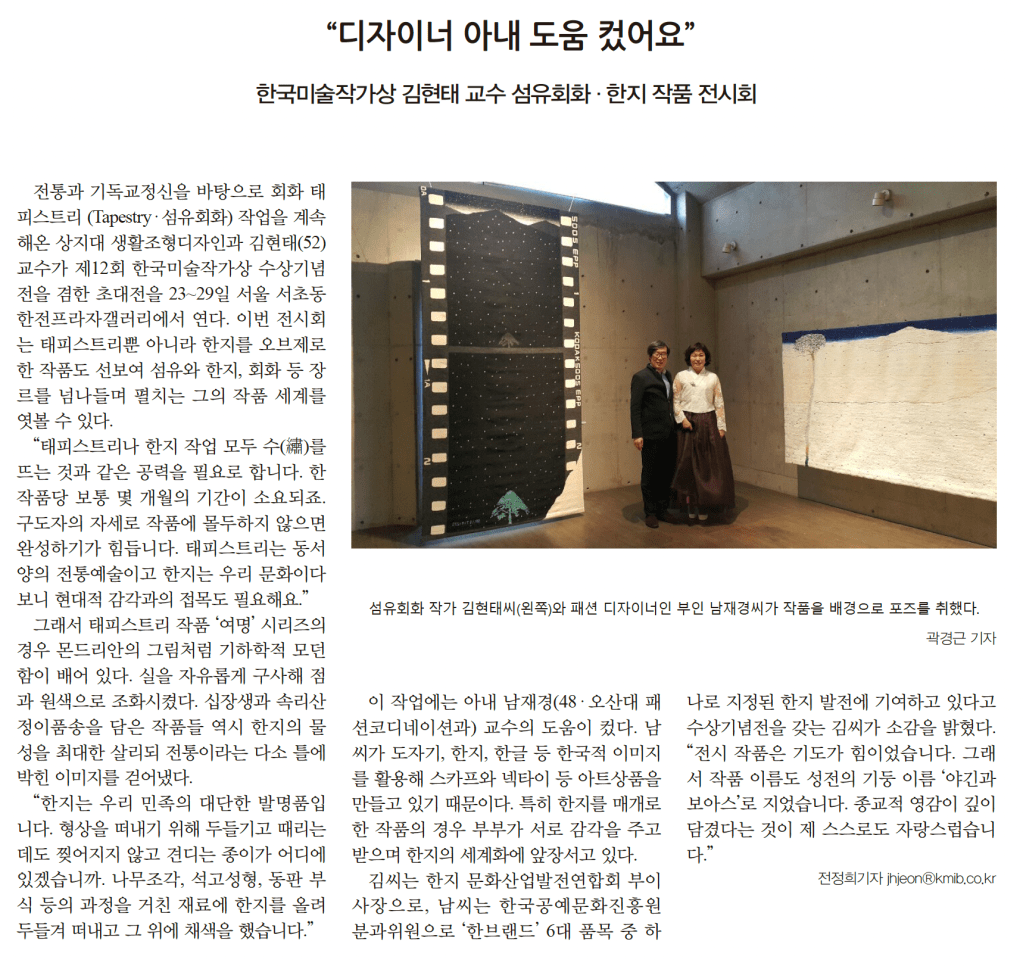 한국미술작가상 김현태 교수 섬유회화·한지 작품 전시회