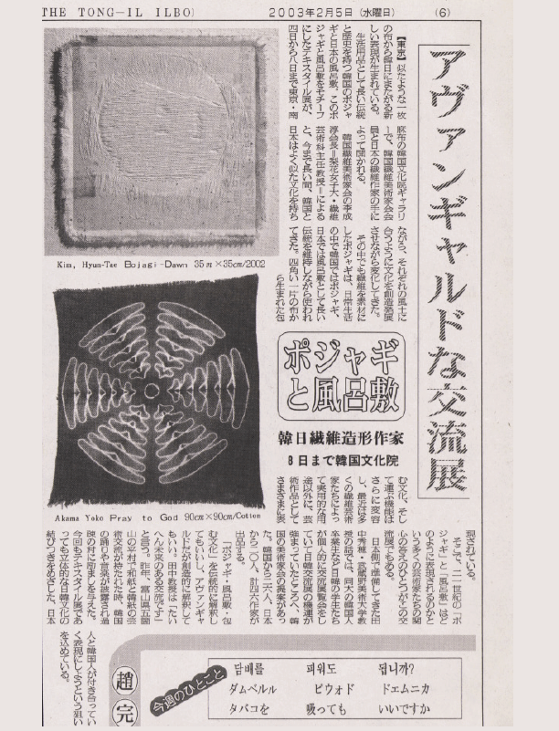 한·일 섬유조형작가전, 주일 한국문화원 2003.2.8., 동아일보, 2003.2.5., 6판