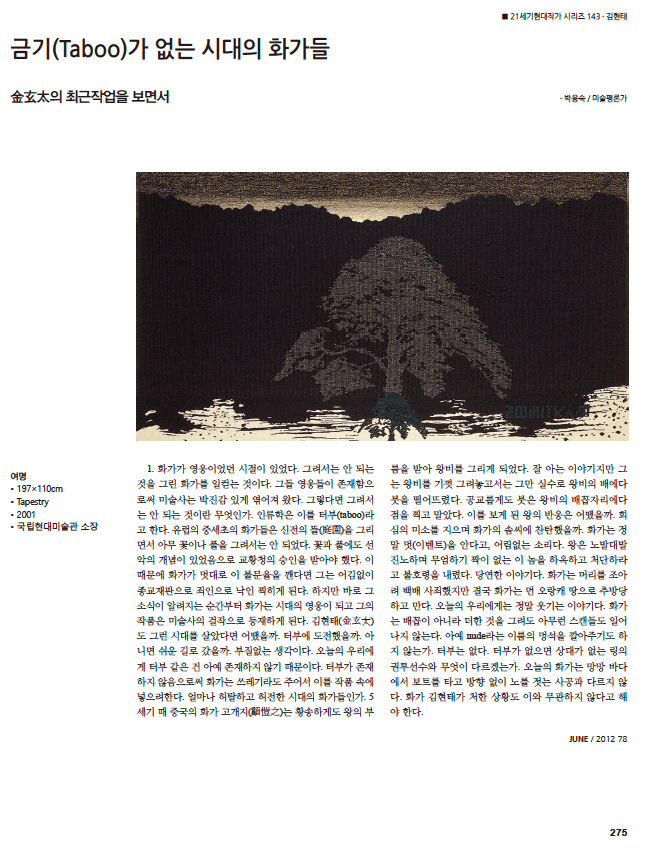 미술시대 편집부, 21세기 현대작가시리즈 143, 김현태, 2012년 6월호, P77~88-