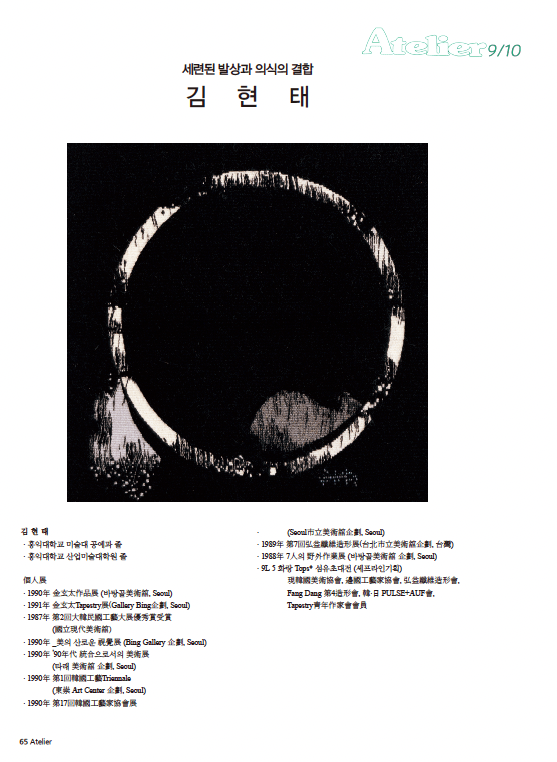 Atelier 편집부, 이달의 작가-세련된 발상과 의식의 결합-김현태, 1992년 9월호, P65~67-